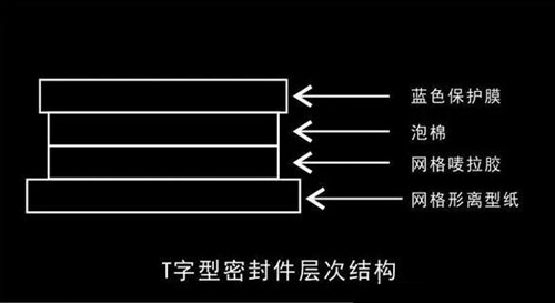 層次劃分有四層:第一層是網格姓的離型紙;第二層是網格嘜拉膠;第三層是泡棉質地;第四層是藍色的保護膜。