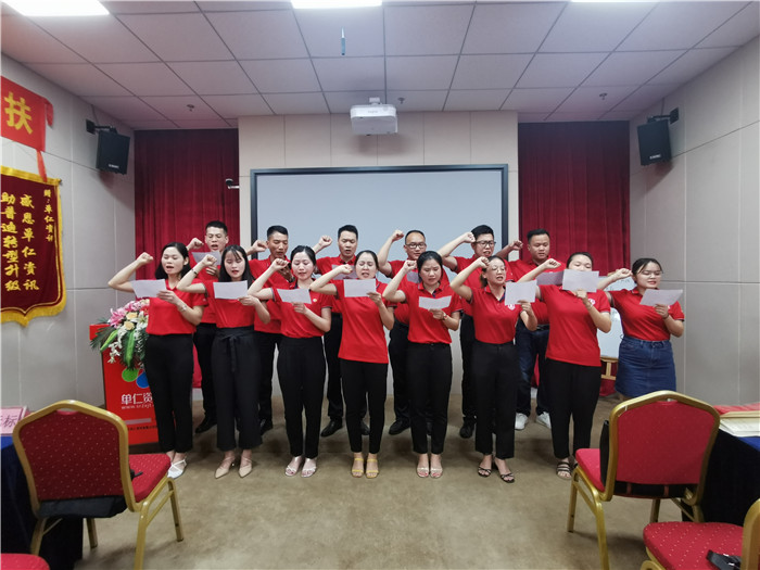 在牛商走訪幫扶的尾聲,作為這次幫扶的對象單仁資訊,全體員工在幫扶會議上再一次的立下業績宣言,目標業績一定勢必達成。